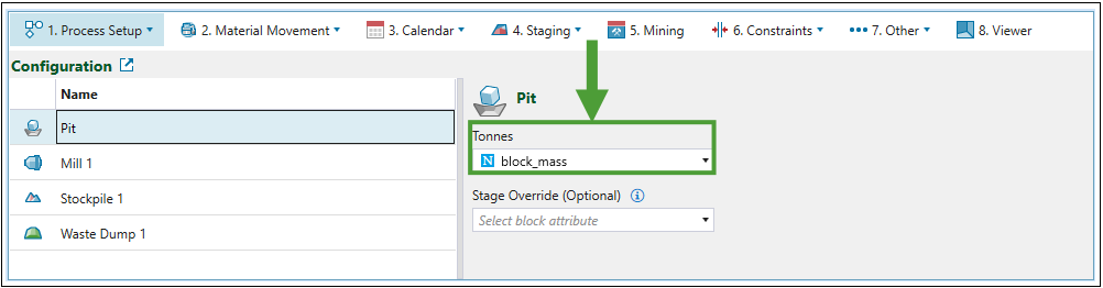 Configuration subtab and set the Tonnes field on your block model (pit) page as block_mass.
