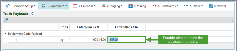 While the payload is displayed based on the truck's maximum load, you can also enter this value manually by double-clicking on the cell with a value that you wish to change.