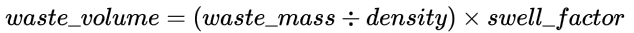 Next, using the density and swell factor that you have set, Evolution will calculate the waste volume according to the following formula: