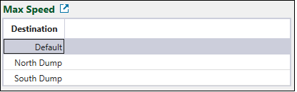 Select a destination. The list of destinations is based on the locations specified in the flowchart of your setup. The Default option allows you to set the maximum speed for all non-destination travel (such as in-pit and surface roads).