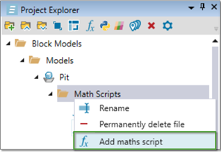 Note: The default name assigned to the newly created script is Block Maths. When there is more than one script with the same name, a consecutive number in brackets will be added to the name, e.g. Block Maths (2). Right-click on the name to change it.