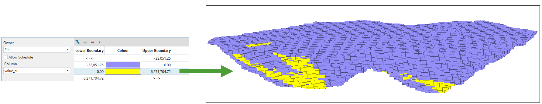 When specifying the parameters, select your model (Pit) from the Owner drop-down menu, and select the variable for the value from the Column drop-down. When specifying the lower and upper boundaries, make sure that all negative values (that is, the occurring loss), are included within one band, whereas the values above zero (that is, the generated profit) are included within the other band.