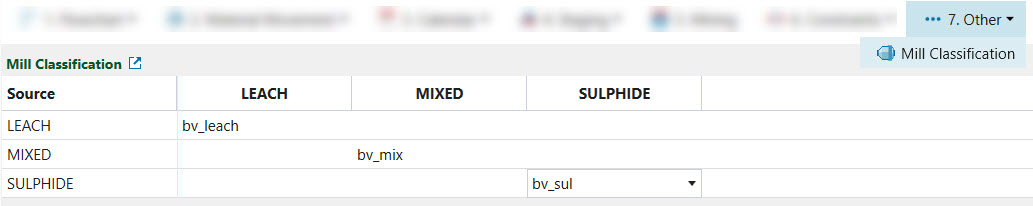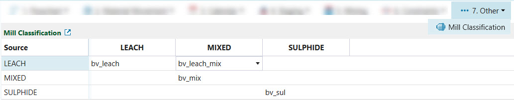 The Mill Classification tab allows you to assign attributes to each mill to facilitate the selection process based on maximising value. These attributes are from the imported pit model.