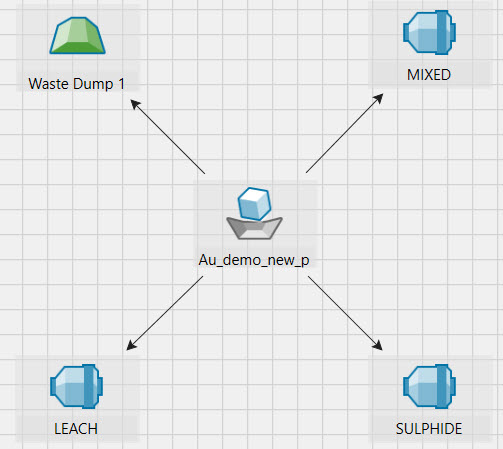 In this example, there are three process plants and each block in the model contains multiple ore parcels. The final destination is based upon their capital value and current process capacities.