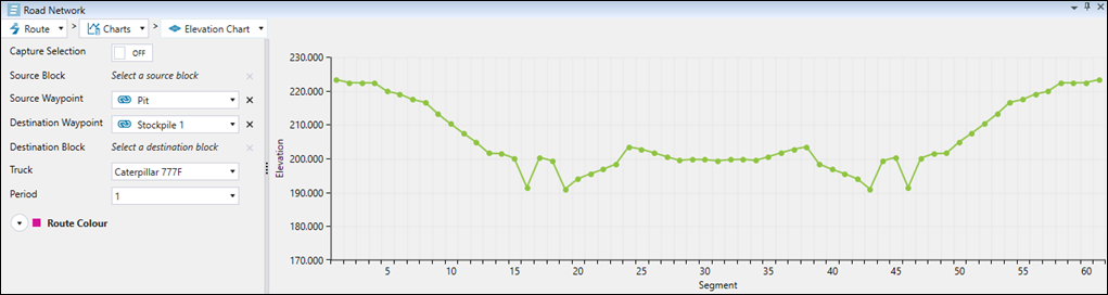 Shows how the site elevation changes over a haul route. |