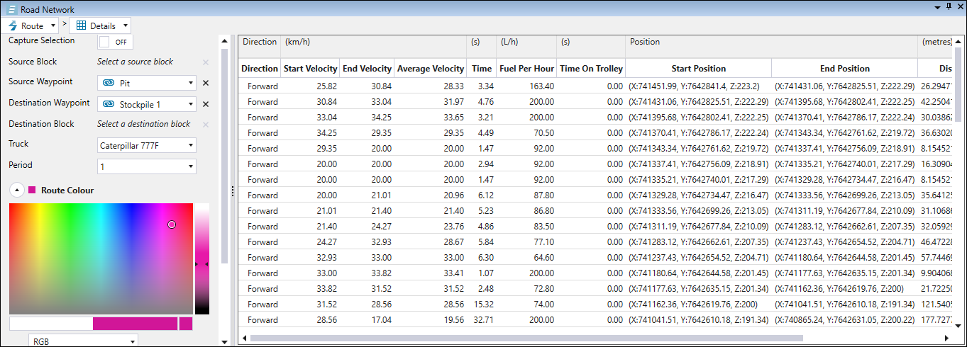 | Source | A point on the road network defined as the exit point to the pit or stockpile. |