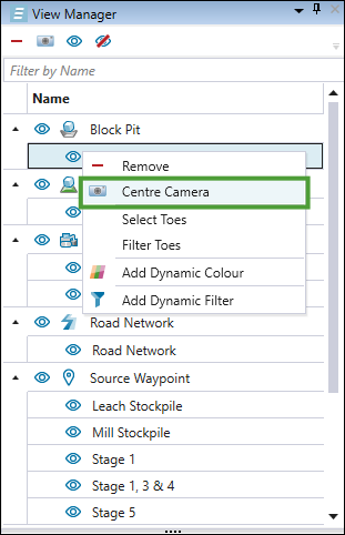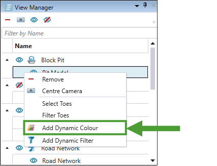 Use the View Manager in conjunction with the viewer to display objects such as models and road networks. In addition to hiding or displaying objects, you can also inspect and highlight your data by using the dedicated tools.