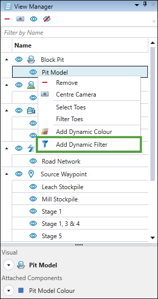 To apply the saved dynamic filter to other models, drag it from the project explorer to the model that you have open in the viewer.