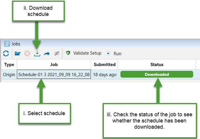 View the status of the job in the Jobs window in the Reporting Window. Once the server has returned a result, download the job from the Jobs window by clicking