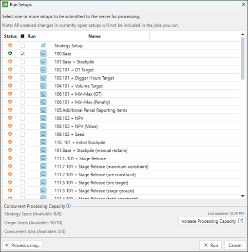 Note: You can increase the processing capacity to run more scenarios concurrently by obtaining Evolution add-on entitlements relevant to the Evolution planning module that you are currently using. Click the Increase Processing Capacity