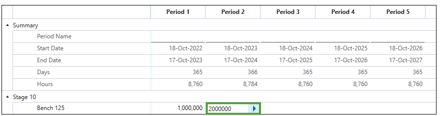 button to copy the properties of the current period to the subsequent periods until the end of the schedule. -