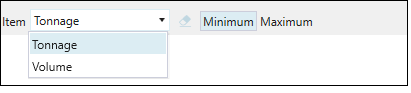 The Item drop-down menu allows you to specify the item to set the accumulation constraint against. You can also set accumulations as minimum or maximum figures by selecting the Minimum or Maximum setting respectively.