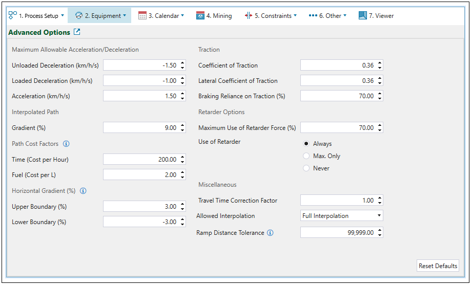 Advanced Options tab allows you to define the following parameters for haulage-based schedules.