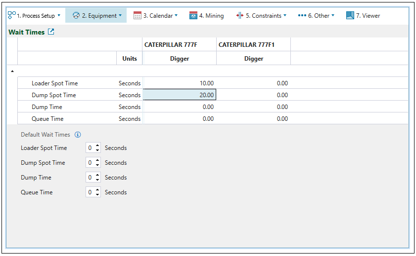 Note: If a particular wait time is not set for a digger-truck combo, the corresponding default wait time will be used instead (a wait time is considered not set if its value is 0).