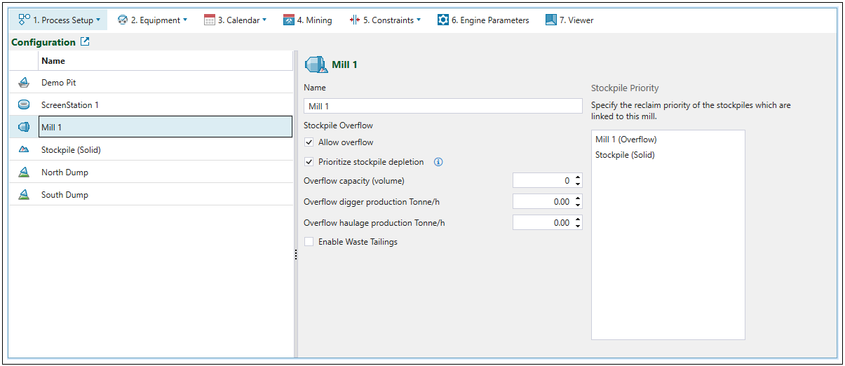 Allow overflow: Select this checkbox to create a stockpile next to the mill (overflow).