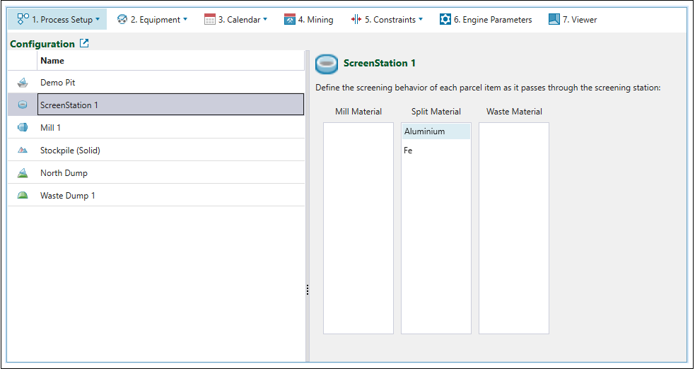 Screening stations are used to separate material into product and waste. Split material can go to either product or waste streams.