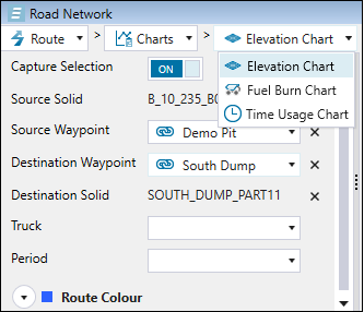 Charts in the Road Network tab in the Viewer and select the required chart type.