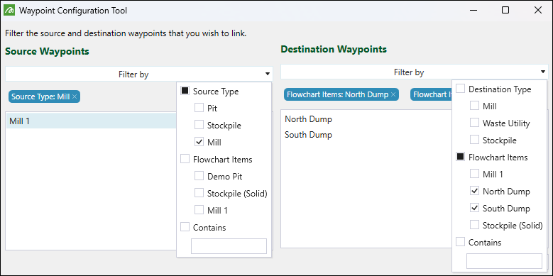 Important: As Origin Solids allows for enabling waste tailings in the mill configuration, source waypoints can also be assigned to mills. This does not apply to Origin Blocks and Epoch setups. See Enable Waste Tailings for more information.