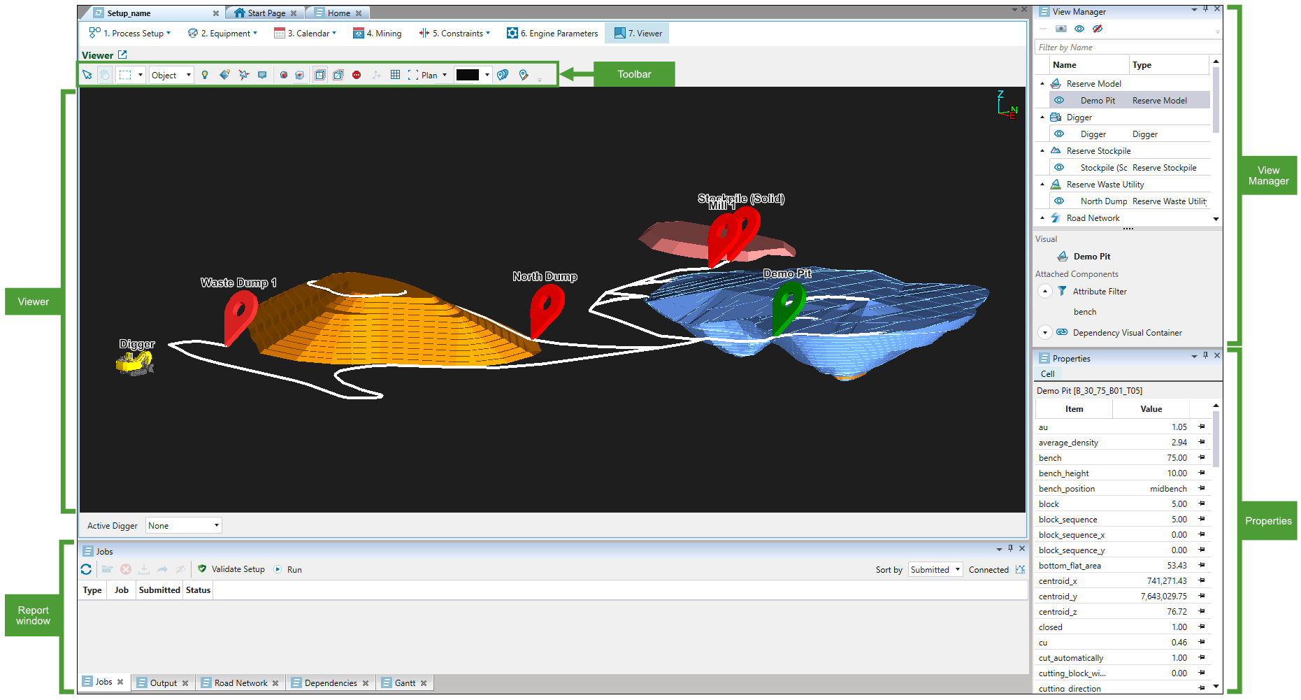 Viewer is used in conjunction with the View Manager, the Properties and the Report Window tabs.