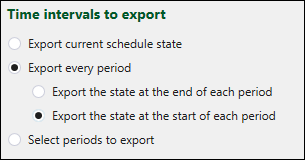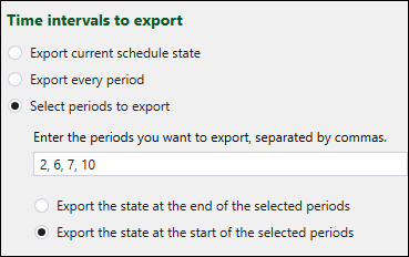 Note: When you select this option, you must also specify the point of time for which you want the solids to be exported by selecting either the Export the state at the end of each period or Export the state at the start of each period radio button.