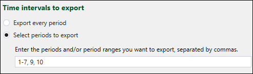 Select periods to export. Specify the periods from which you want to export the solids by entering them in the field, separated by commas. You can also specify the period ranges to be exported.