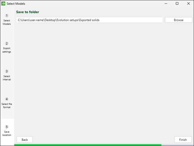 Click Browse to specify the folder in which you want the files to be saved, then click Finish to confirm the export of solids.