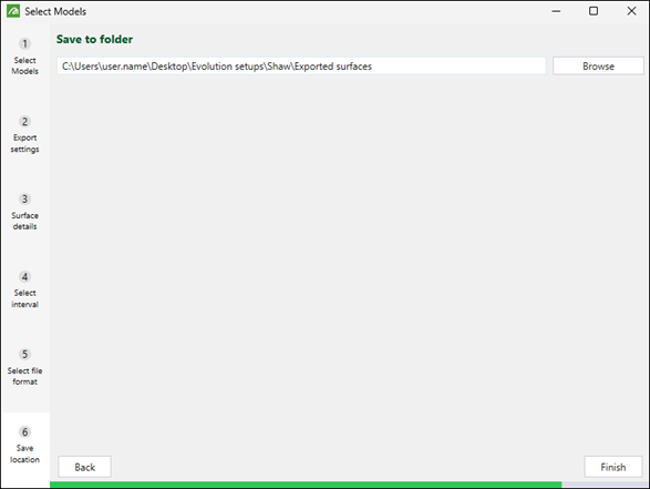 Click Browse to specify the folder in which you want the files to be saved, then click Finish to confirm the export of the surfaces.