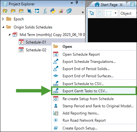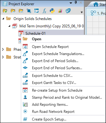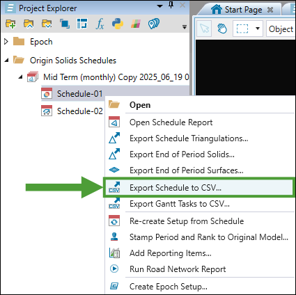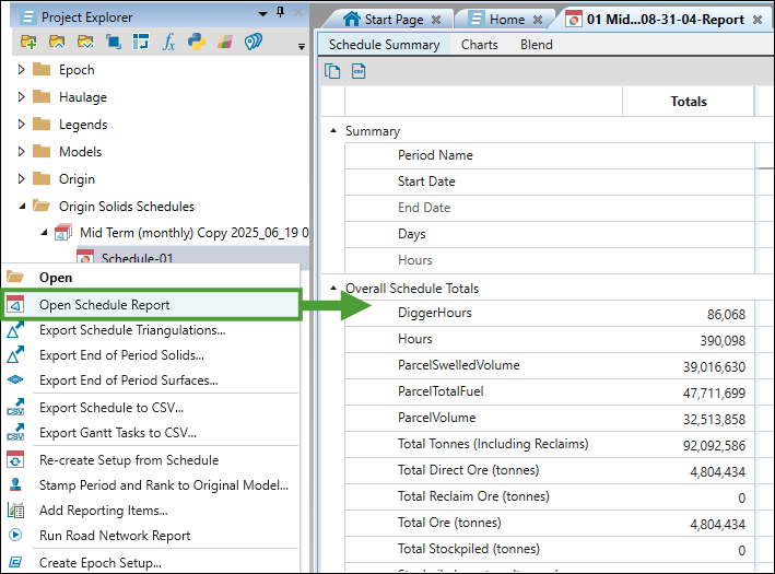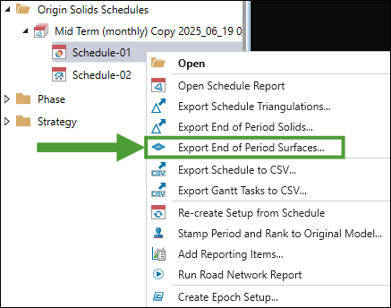 Export End of Period Solids....Alternatively, double-click a schedule in the project explorer to open it in the viewer and click