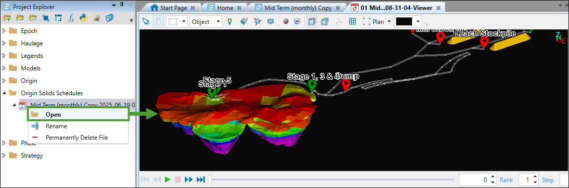 Alternatively, double-click a schedule in the project explorer to open it in the viewer and click