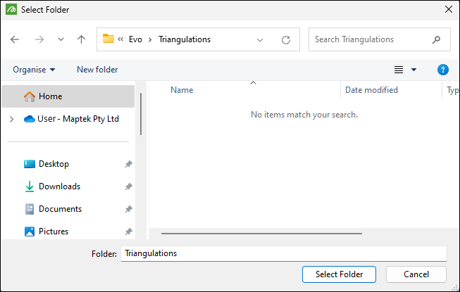 In the Select Folder dialog, select a folder to save the triangulations in and click Select Folder.