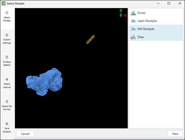 Select the models for which you want the end-of-period surfaces to be exported and click Next.