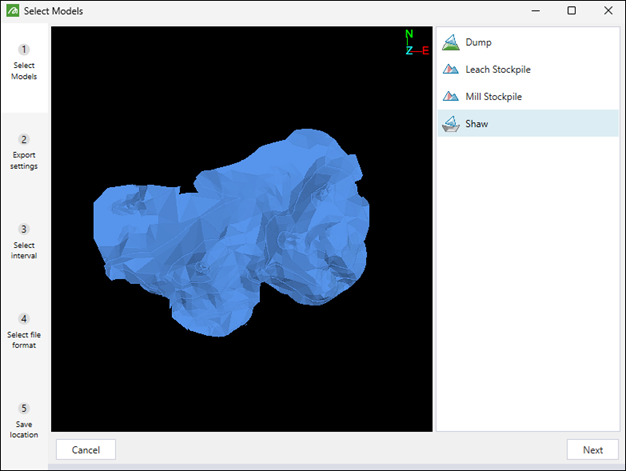 In the Select Models panel, select the models for which you want the end-of-period solids to be exported and click Next.