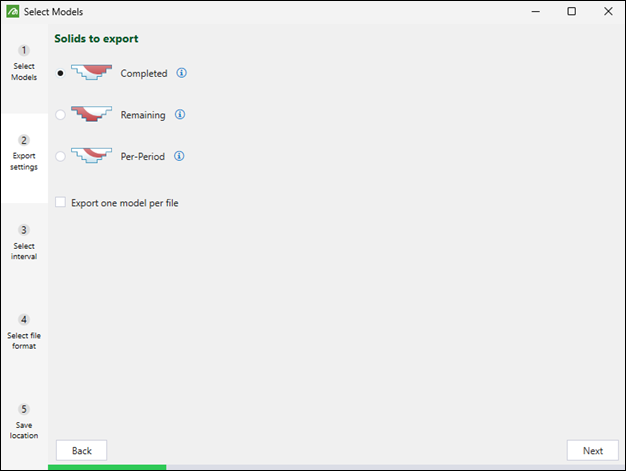 Per-Period. Depending on the models you have selected in the previous step, the following solids will be exported:
