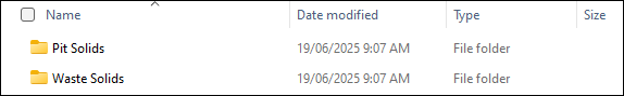 Open the file explorer and navigate to the folder that contains your exported pit or waste solid triangulations.