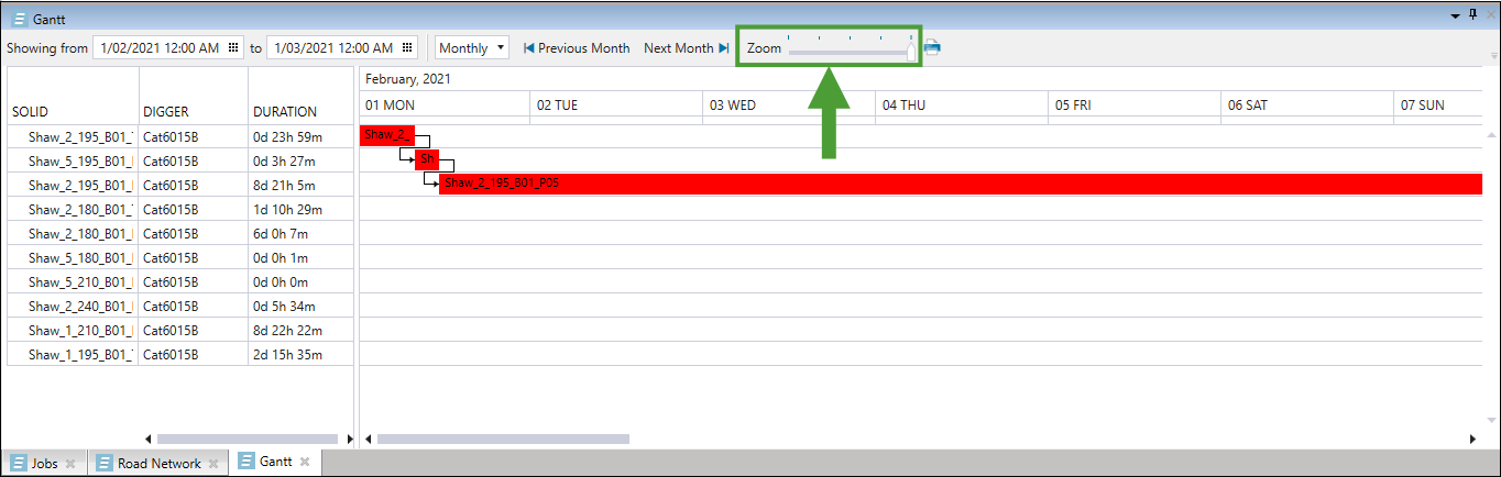 Using the Zoom slider, set the size of task tiles displayed in the Gantt chart.