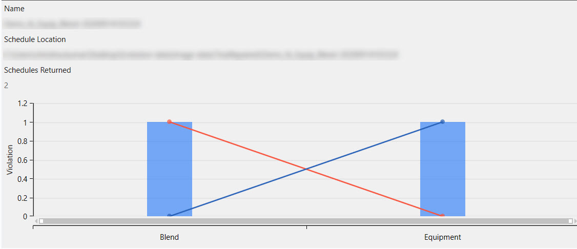 In the above schedule collection, two schedules have been returned; one meets the blend objective but violates the equipment objective while the other meets the equipment objective but violates the blend objective.