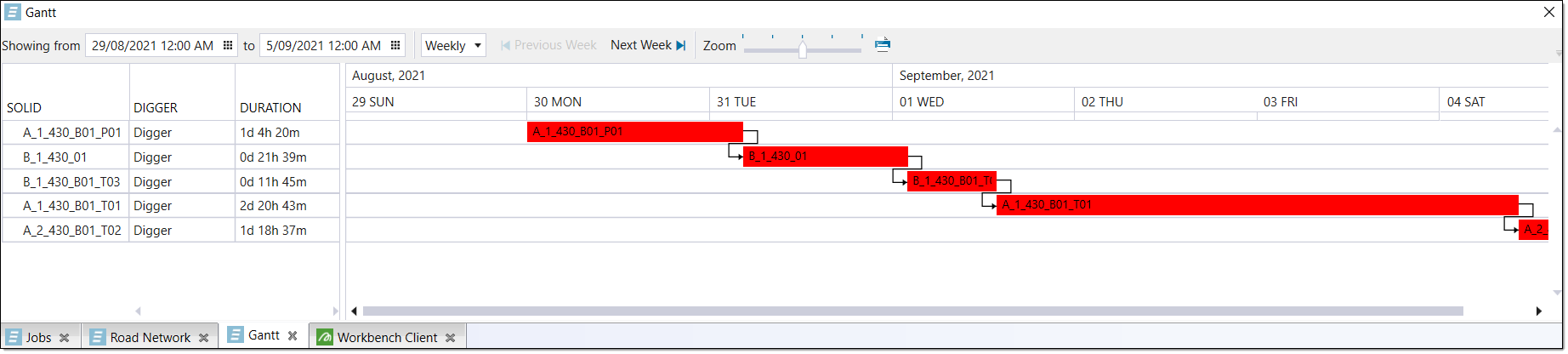 The Gantt tab provides you with a Gantt chart view of your schedule. To use this tab, select the Gantt tab in the report window.