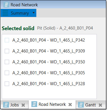 Select a solid to view its haulage routes. All the routes connected to the selected solid will be listed under Selected solid.