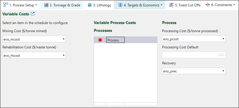 Strategy schedules provide a mechanism for cut-off grade optimisation where blocks are transported to different destinations based on the amount of ore they contain. Cut-off grade optimisation is based around a breakeven point after which a profit can be made. This point is called differently based on the number of processes in the setup: