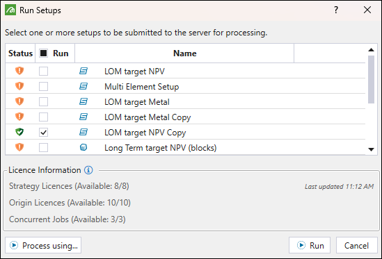 In the Run Setups window, select the setup for which you want the schedule to be generated and click