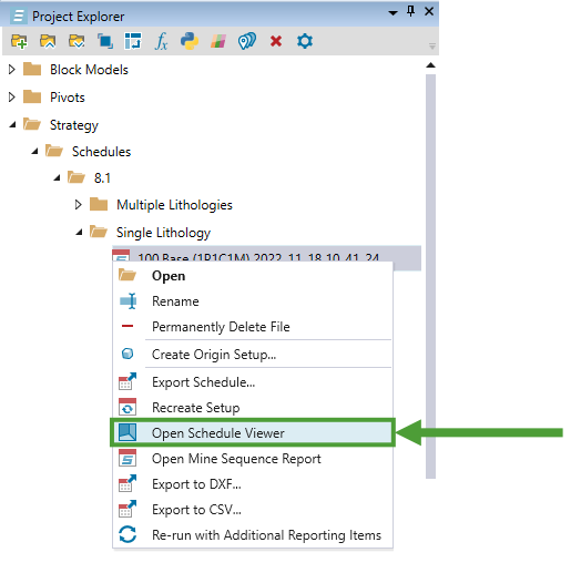 You can open the Schedule Viewer by right-clicking on a schedule in the project explorer and selecting