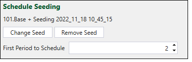 You can derive new schedules from previously created schedules using Evolution’s seeding mechanism. After selecting an existing schedule via the Select Seed button, specify the First Period to Schedule. The parameters from the selected seed schedule will be used for scheduling before the selected start period.