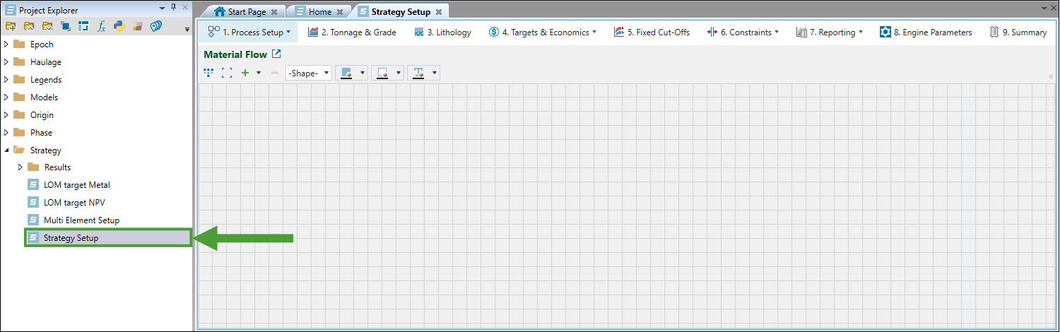 Strategy in the New Setup group on the Evolution ribbon. A new panel will appear. - A new Strategy setup will be added to the project explorer and opened in your workspace. Proceed with the instructions given in the 2. Configure the Setup to enter the required data.