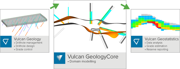Vulcan GeologyCore has been designed to integrate seamlessly with Maptek Vulcan. Manage your drillhole and mine data in Vulcan. Use Vulcan GeologyCore to validate your data, define domains and generate models, before publishing back to Vulcan to model grades and perform advanced statistical analysis.