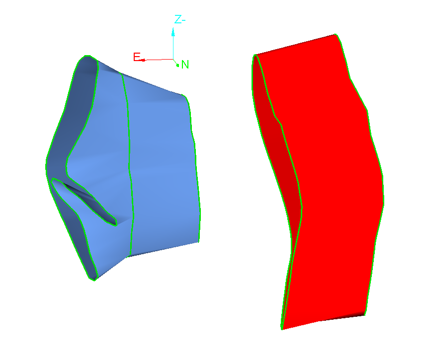 Note: Holes may occur in the model if the feature size guide is too small and the procedure cannot find a neighbouring point close enough to connect to. Larger feature sizes will result in less holes in the triangulation but will also result in less detail representing the true shape of the stope/ground.