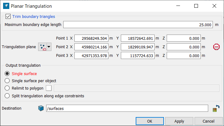 Ensure the data to be triangulated is selected in the Explorer window or View window and click OK or Apply.
