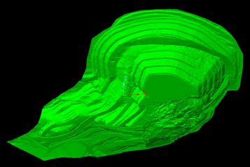 The example below shows a topographic triangulation of a pit with the Relimited to a polygon option selected.