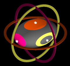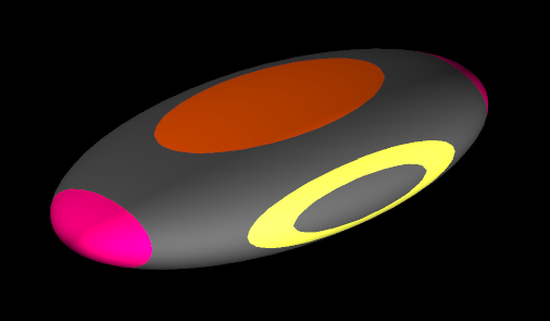 The visualisation of an ellipsoid uses three colours to represent each axis. The “forward” direction of each axis is indicated by solid colour at one end of the ellipsoid, while the “backwards” direction is indicated by a ring shape in the same colour.