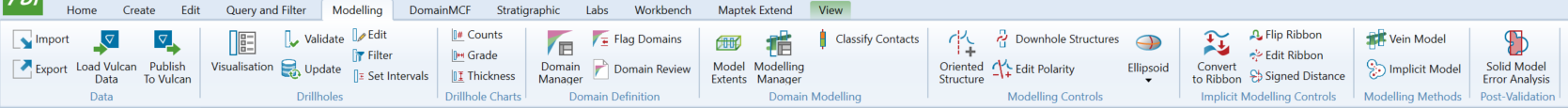 The Modelling ribbon menu contains all the tools you need to carry out vein and implicit modelling.