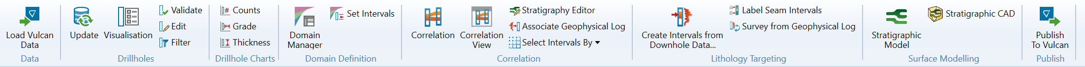 Data — Use this function to load Vulcan data into Vulcan GeologyCore. You can read more about this function in step one of the main workflow.